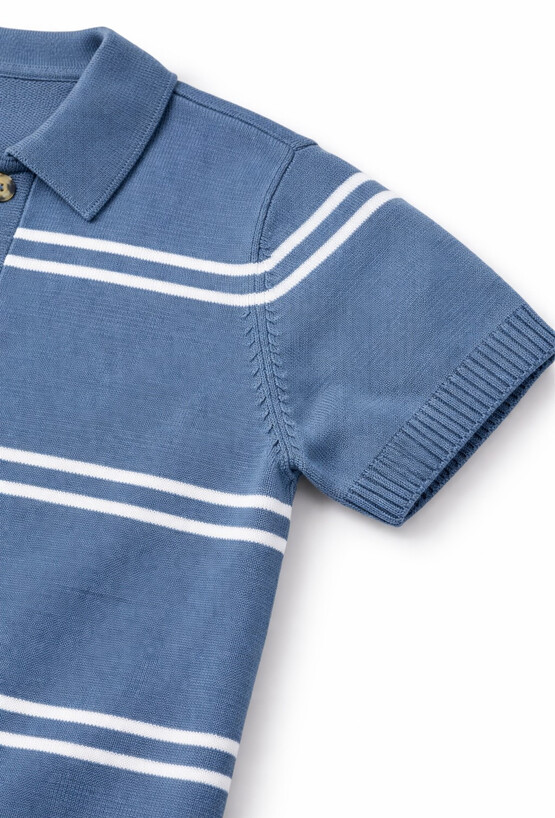 Niebieskie polo o swetrowej strukturze to stylowa propozycja dla chłopca – idealna na rodzinne wyjścia, do szkoły i na co dzień w bardziej eleganckim wydaniu. Model wykonano w 100% z bawełny, dzięki czemu jest przyjemny w noszeniu i przewiewny. Kontrastowe paski dodają mu klasycznego charakteru, a kołnierzyk oraz zapięcie pod szyją na guziki pozwalają łatwo dopasować styl do okazji.
