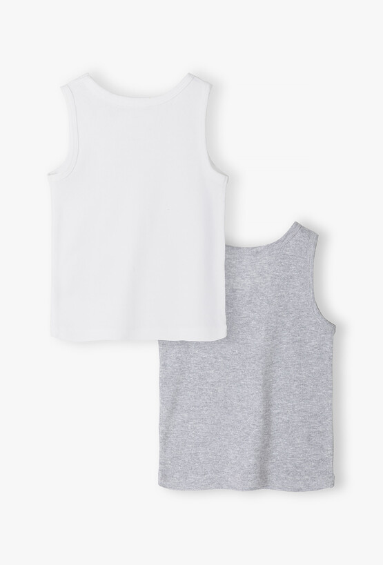 Zapewnij swojemu dziecku komfort i dodatkową ochronę przez cały dzień! Ten praktyczny 2-pak podkoszulek bez rękawów to klasyka gatunku, która doskonale sprawdzi się jako pierwsza warstwa pod bluzę, piżamę lub koszulę. Dzięki neutralnej kolorystyce, zestaw ten jest niezastąpionym elementem dziecięcej garderoby o każdej porze roku. Wybierając 2-pak, zyskujesz gotową bazę na zmianę, co jest niezwykle wygodne przy kompletowaniu codziennej wyprawki do przedszkola czy szkoły. Szerokie, komfortowe ramiączka oraz głębokie wycięcia pod pachami gwarantują pełną swobodę ruchów, nie krępując malucha podczas zabawy czy snu.