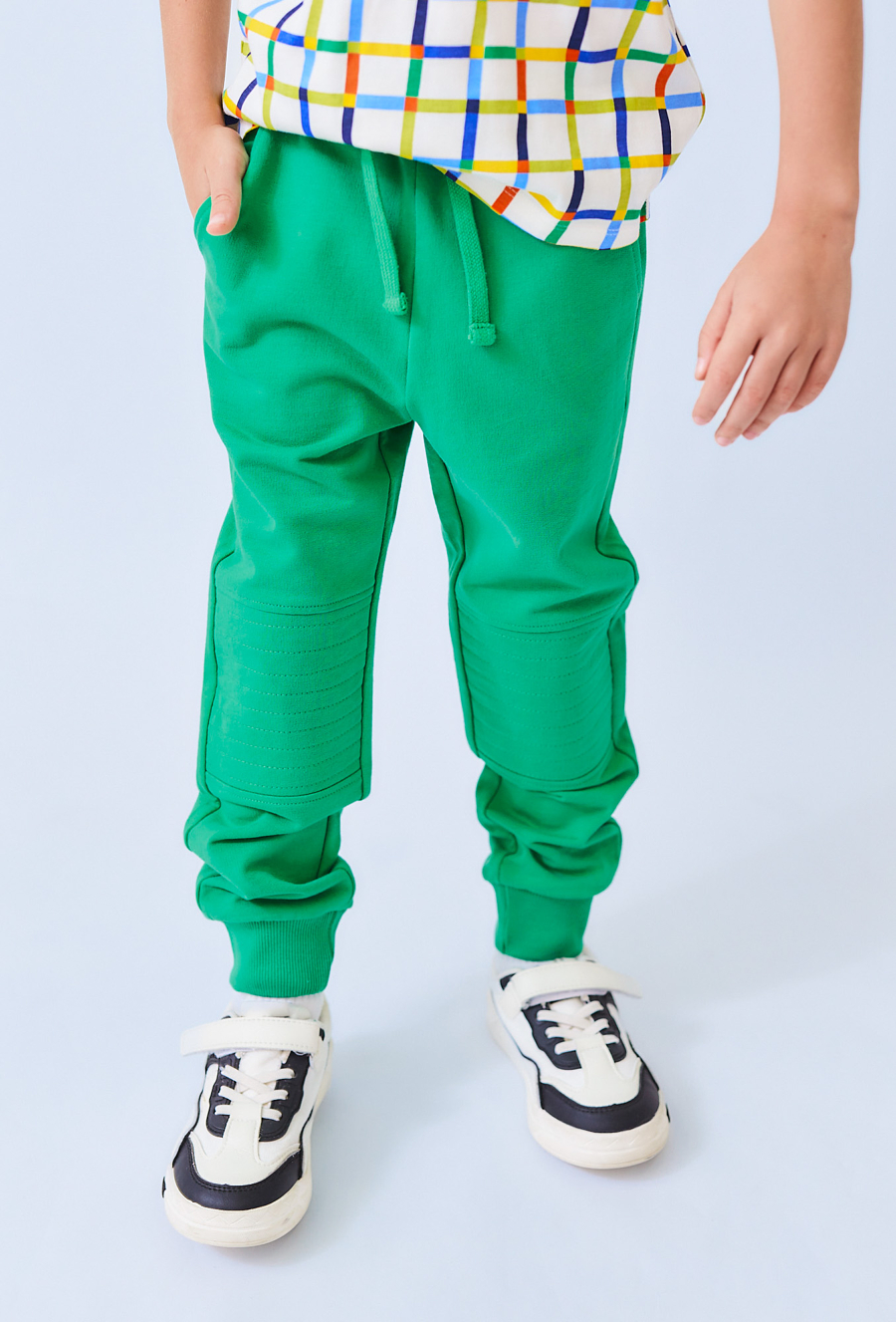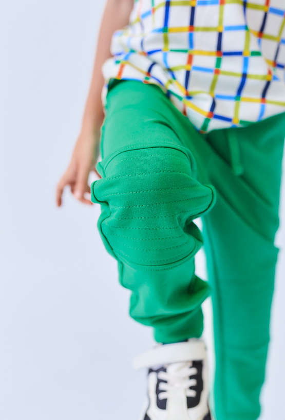 Zielone spodnie dresowe chłopięce – wzmocnione kolana.