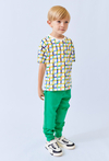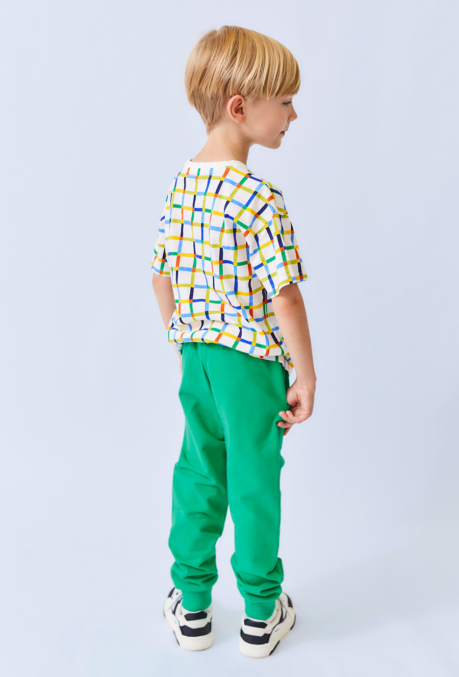 Koszulka chłopięca oversize w kratkę – 100% bawełna, ecru.