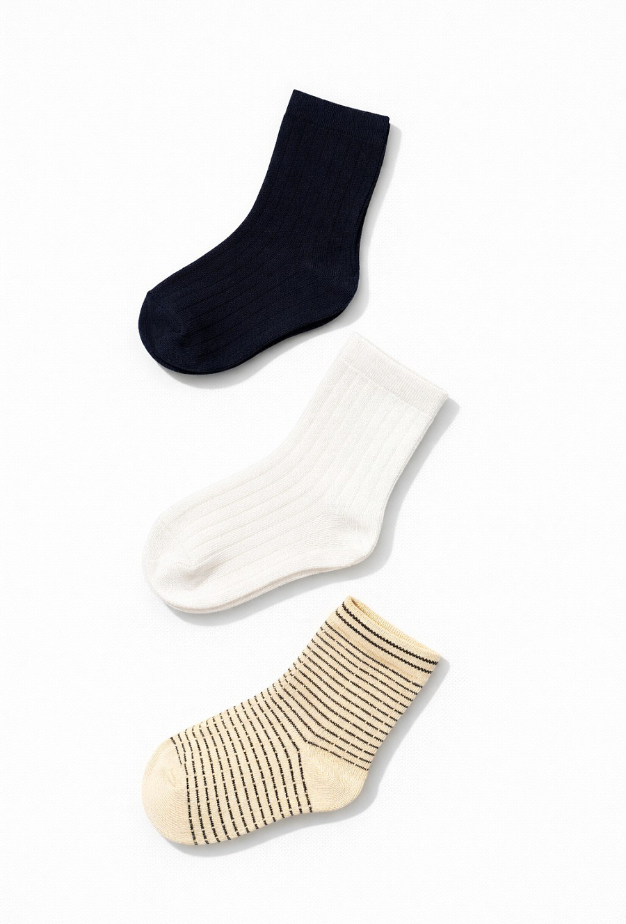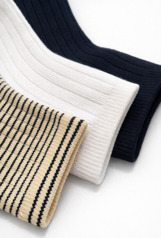 Klasyczny 3-pak skarpetek chłopięcych, które pasują do wszystkiego. W zestawie znajdują się trzy modele w uniwersalnych kolorach: gładkie czarne, gładkie białe oraz beżowe w czarne paski. Skarpetki mają wygodny fason i prążkowany ściągacz, dzięki czemu dobrze trzymają się na stopie i sprawdzają się w codziennym użytkowaniu – do sneakersów, trampek i półbutów.