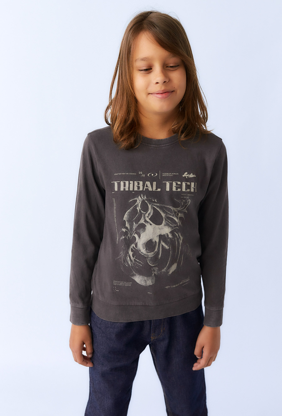 Stylowa bluzka chłopięca z długim rękawem i nadrukiem Tribal Tech to połączenie wygody i modnego designu. Wykonana w 100% z miękkiej bawełny. Dzięki elastycznym ściągaczom przy rękawach świetnie dopasowuje się i nie krępuje ruchów. Grafika w industrialnym stylu nadaje jej nowoczesnego charakteru – idealna dla chłopców lubiących wyraziste stylizacje.