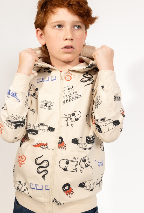 Chłopięca rozpinana bluza z kapturem i nadrukiem