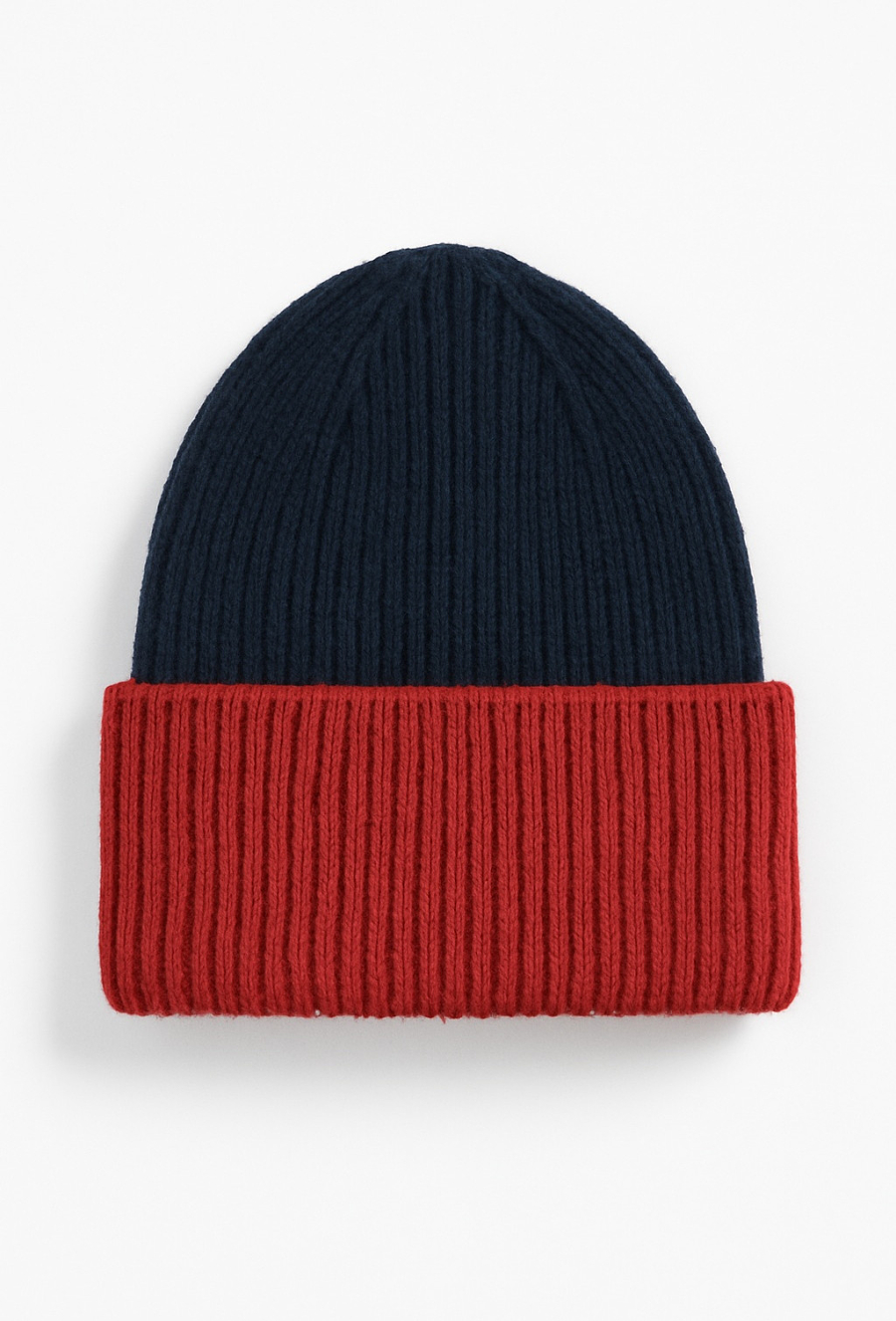 Chłopięca czapka zimowa granatowo-czerwona z przędzy