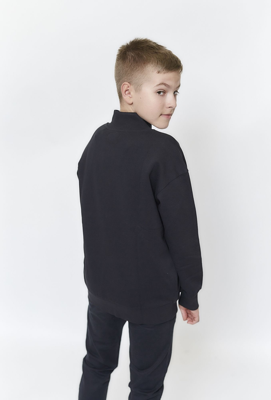Czarna bluza chłopięca to uniwersalny element garderoby, który sprawdzi się w każdej stylizacji. Wykonana z miękkiego materiału, zapewnia komfort noszenia przez cały dzień. Wysoka stójka chroni przed chłodem, a elastyczne ściągacze dbają o dobre dopasowanie. Mały nadruk na piersi dodaje sportowego charakteru. Idealna do szkoły, na spacer czy aktywność na świeżym powietrzu.