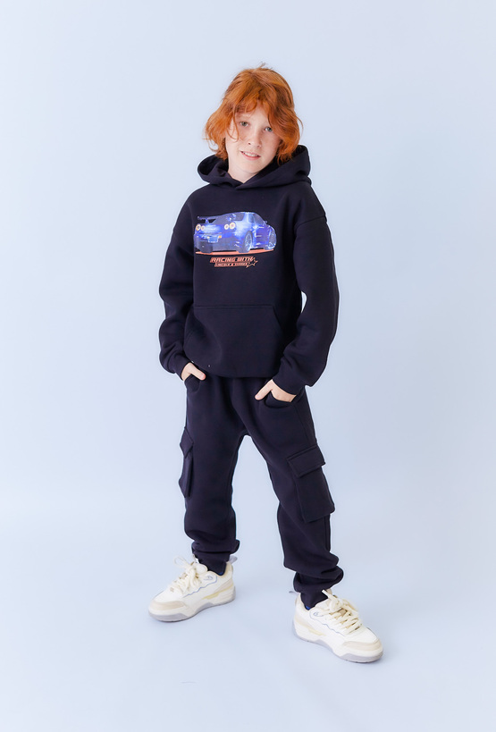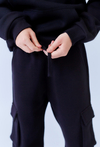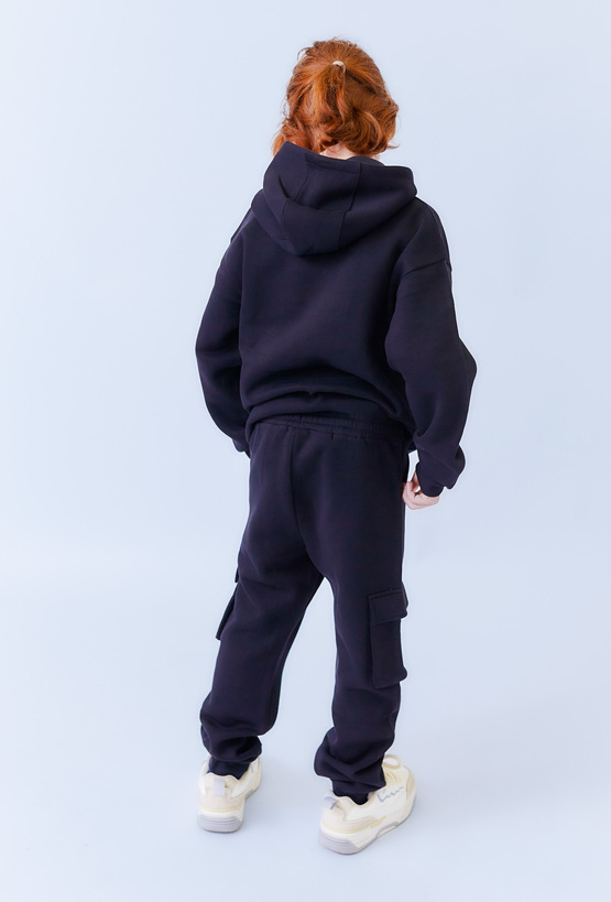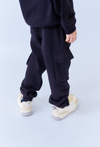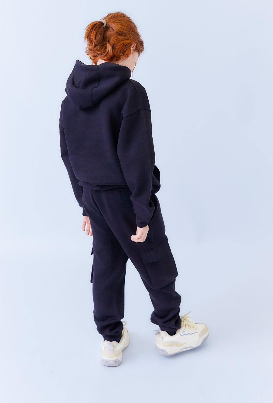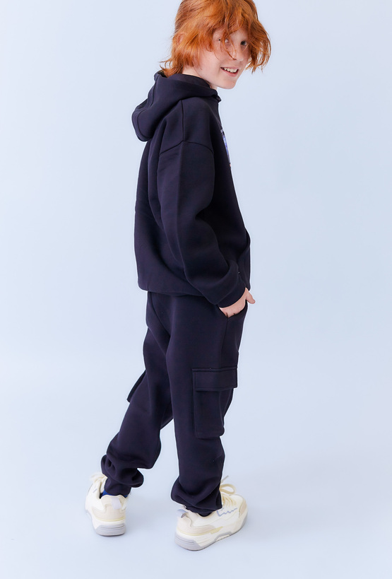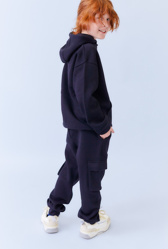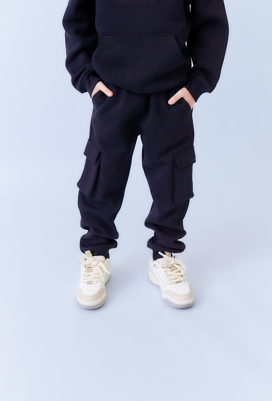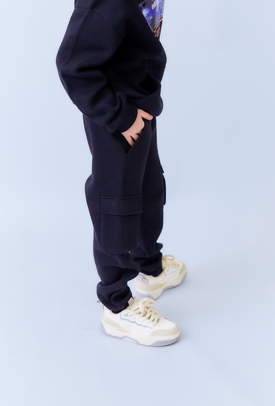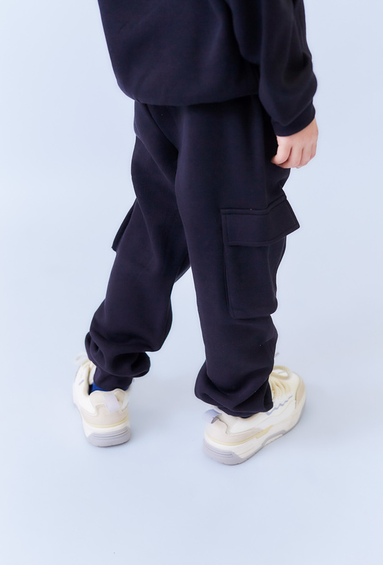 Czarne spodnie dresowe chłopięce cargo, cieplejszy model