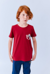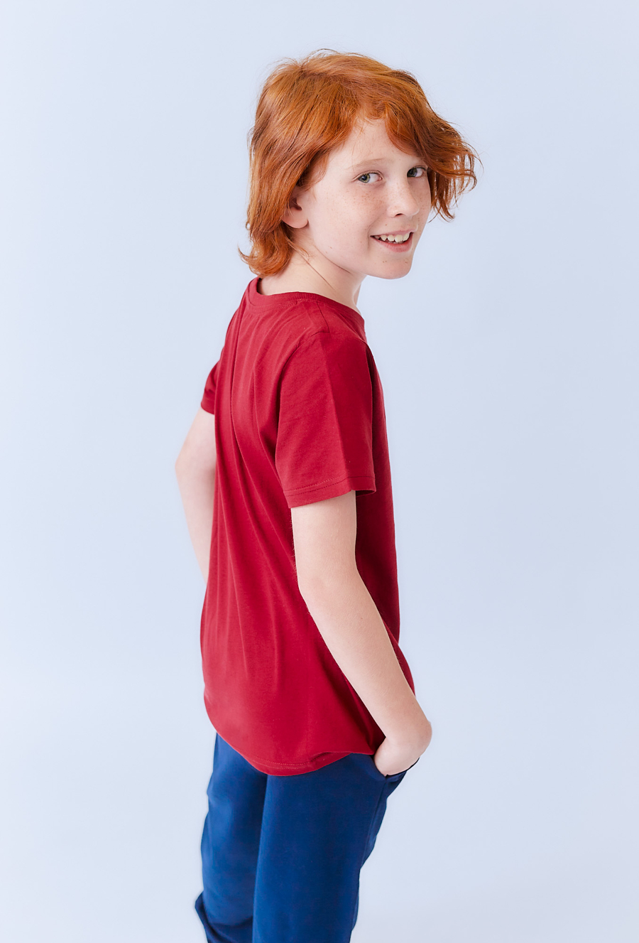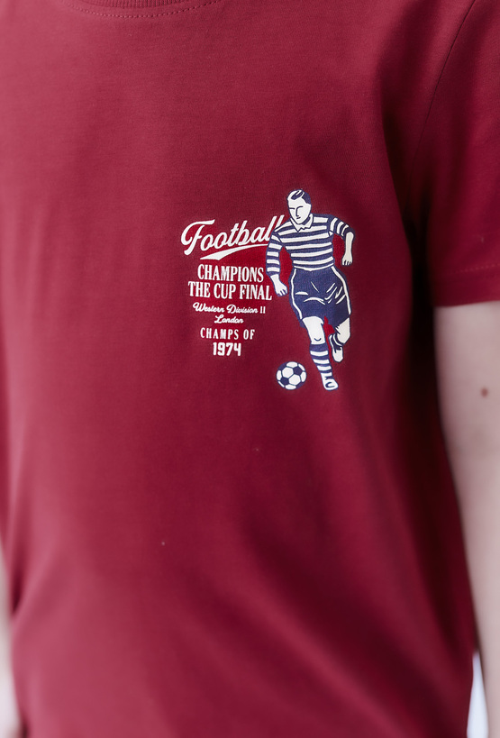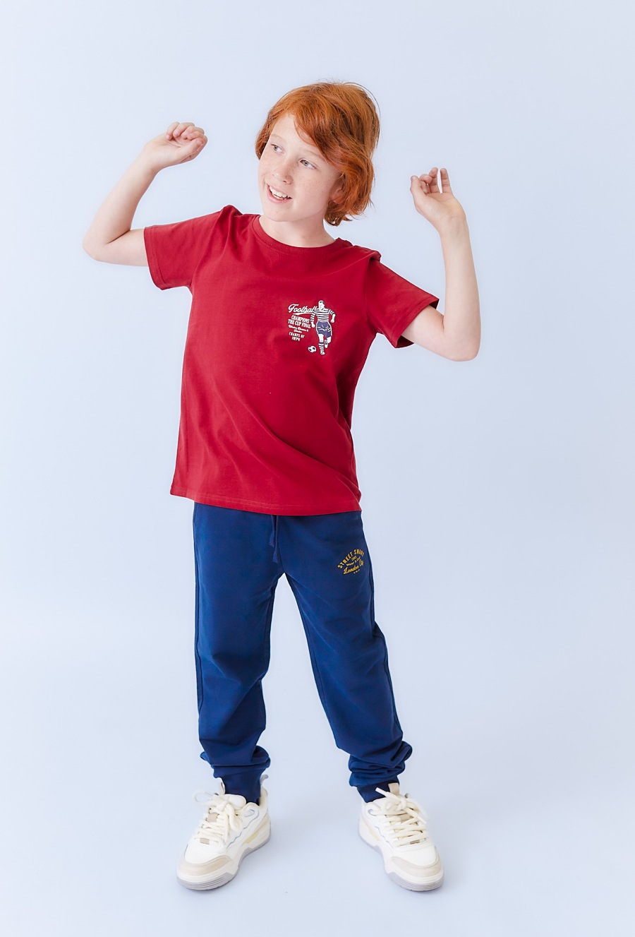 Czerwona koszulka chłopięca z motywem piłkarskim