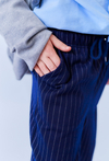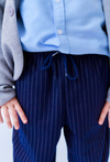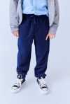 Granatowe spodnie dresowe chłopięce w drobne paski to idealny wybór dla chłopców, którzy chcą wyglądać stylowo i czuć się swobodnie. Połączenie eleganckiego wzoru w prążek z wygodnym fasonem to kwintesencja sportowej elegancji. Wykonane z miękkiego i elastycznego materiału zapewniają komfort noszenia przez cały dzień – zarówno w szkole, jak i podczas rodzinnych uroczystości. Wyjątkowy wzór sprawia, że te spodnie wyróżniają się na tle klasycznych modeli. To świetna baza do stworzenia zarówno codziennych, jak i bardziej eleganckich stylizacji.