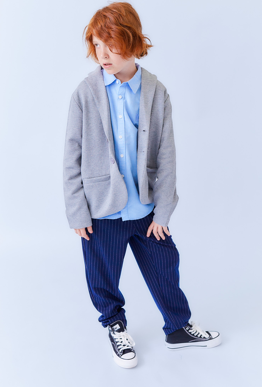 Szara marynarka chłopięca z dzianiny strukturalnej