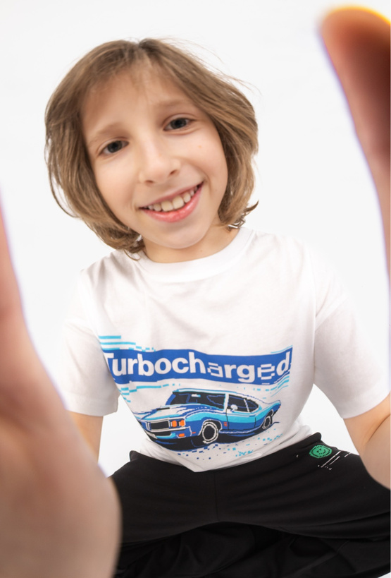 Biała koszulka dla chłopca w kroju oversize z nadrukiem samochodowym to propozycja dla małych fanów motoryzacji i wyrazistych grafik. Uszyta z 100% bawełny, jest miękka, przewiewna i komfortowa, dzięki czemu sprawdza się w codziennym noszeniu – w szkole, na spacerze i podczas aktywnej zabawy. Luźniejszy fason oversize zapewnia swobodę ruchów i modny, streetwearowy wygląd. Duży nadruk na przodzie przyciąga uwagę i świetnie łączy się z jeansami, joggerami lub szortami.