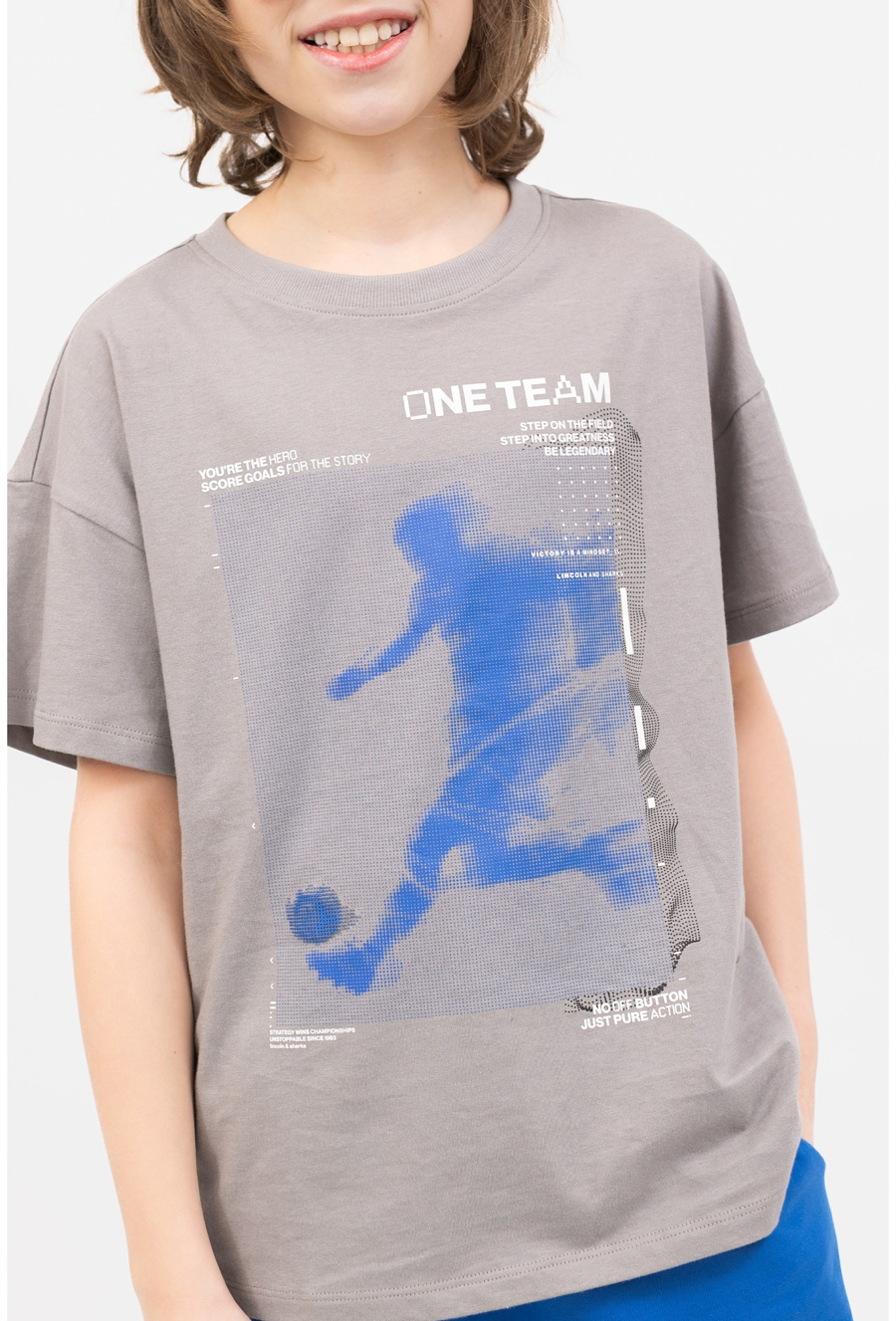 Szara koszulka dla chłopca o kroju oversize z printem w motywie piłkarskim to propozycja dla fanów sportowego stylu i maksymalnej wygody. Wykonana z 100% bawełny, jest miękka, przewiewna i przyjemna dla skóry, dzięki czemu świetnie sprawdzi się w aktywny dzień – w szkole, na boisku i podczas zabawy z przyjaciółmi. Luźniejszy fason oversize daje swobodę ruchów i tworzy modny, streetwearowy look. Koszulka doskonale łączy się z jeansami, joggerami i szortami, a neutralny szary kolor pasuje do wielu zestawów.