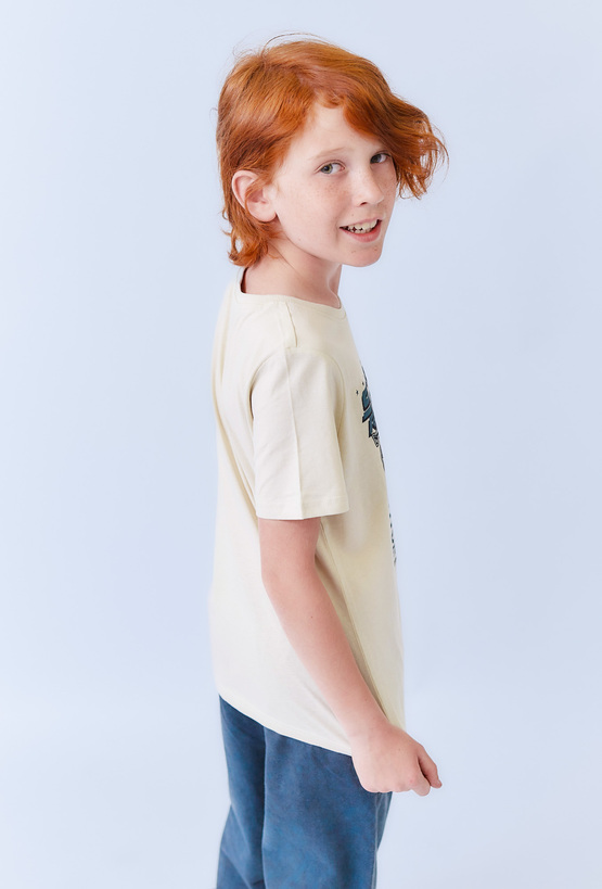 Koszulka chłopięca ecru z nadrukiem No Limits