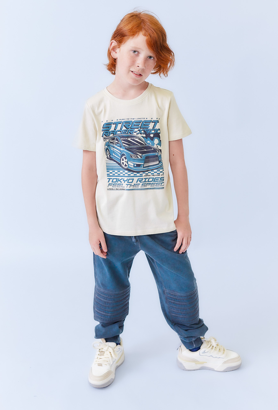 Stylowa koszulka chłopięca z krótkim rękawem w kolorze ecru to doskonały wybór dla małych fanów motoryzacji i sportowych klimatów. Wykonana w 100% z miękkiej i przewiewnej bawełny, zapewnia komfort noszenia przez cały dzień. Przód zdobi duży, kolorowy nadruk z motywem sportowego auta, który dodaje koszulce sportowego charakteru. Klasyczny fason z okrągłym dekoltem sprawia, że świetnie pasuje zarówno do jeansów, jak i spodni dresowych. To idealna propozycja na co dzień – do szkoły, na plac zabaw czy weekendowe wyjścia.