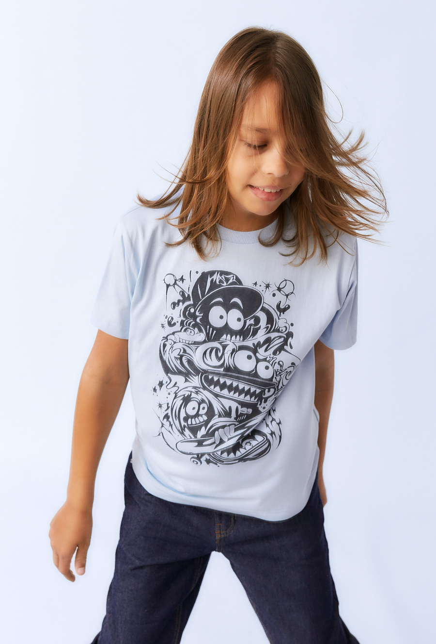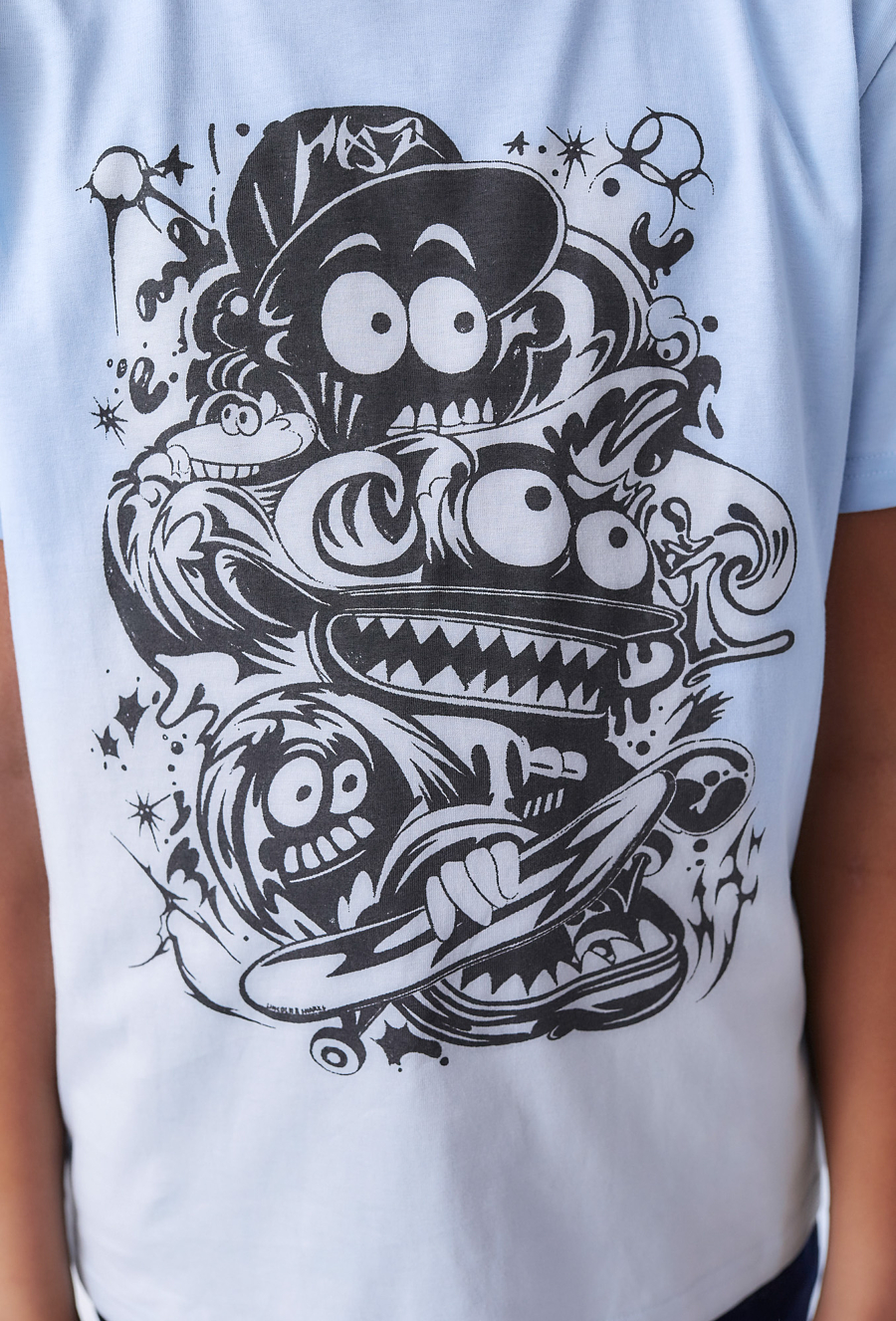 Wyróżnij się z tłumu z tą jasną koszulką chłopięcą ozdobioną dynamicznym czarno-białym nadrukiem postaci kreskówkowych. To idealna propozycja dla fanów kreatywnych wzorów i oryginalnego stylu. Koszulka wykonana z bawełny zapewnia wygodę, oddychalność i komfort noszenia przez cały dzień. Sprawdzi się zarówno w szkole, jak i podczas weekendowej zabawy.