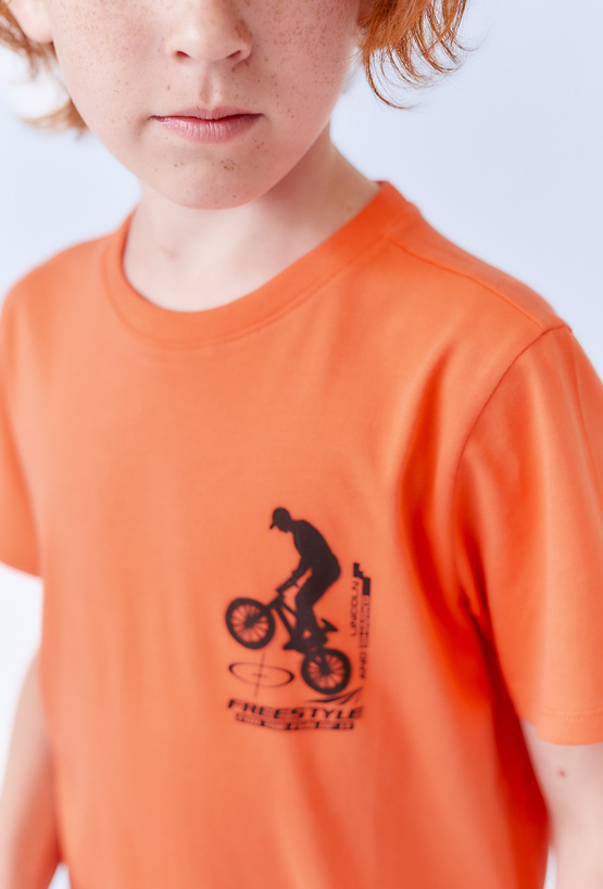 Koszulka chłopięca z małym nadrukiem – pomarańczowa
