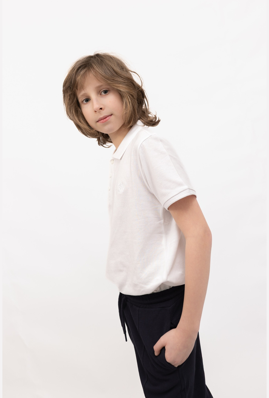 Klasyka, która zawsze wygląda dobrze. Biała koszulka polo z dzianiny pique (100% bawełna) to świetna baza do szkolnych i eleganckich stylizacji, ale sprawdzi się też na co dzień. Materiał jest przewiewny i przyjemny w dotyku. Model ma kołnierzyk oraz dekolt zapinany na guziki, dzięki czemu łatwo dopasować go do okazji – wystarczy rozpiąć dla luźniejszego looku lub zapiąć, gdy ma być bardziej formalnie. Całość uzupełnia subtelny, monochromatyczny haft na piersi.