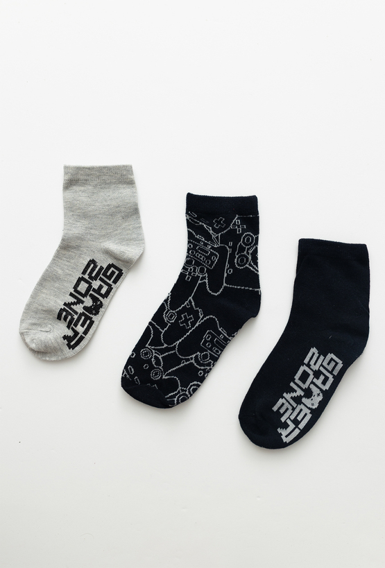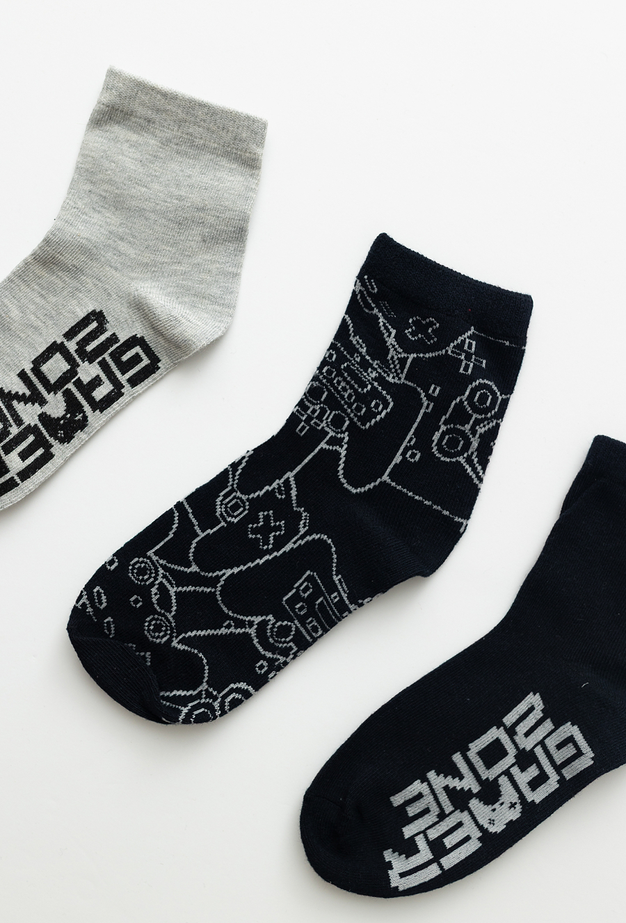 Skarpety chłopięce w zestawie 3-pak z motywem gry to idealna propozycja dla małych fanów konsoli i gamingu. Wzory inspirowane światem gier – od kontrolerów po dynamiczne napisy – dodają im nowoczesnego stylu. Wykonane w 70% z oddychającej bawełny z dodatkiem poliamidu i elastanu, są miękkie, trwałe i elastyczne. Doskonałe do codziennego noszenia, zapewniają komfort podczas zabawy i nauki.