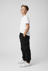Czarne spodnie dresowe cargo dla chłopca to połączenie wygody dresów i praktycznego kroju z kieszeniami. Model regular dobrze układa się na sylwetce i zapewnia swobodę ruchu, a miękka, bawełniana dzianina sprawdza się na co dzień – do szkoły, na spacer i w podróży. Kieszenie na wysokości bioder oraz duże kieszenie na bokach nogawek pomieszczą drobiazgi, dzięki czemu spodnie są nie tylko stylowe, ale i funkcjonalne.