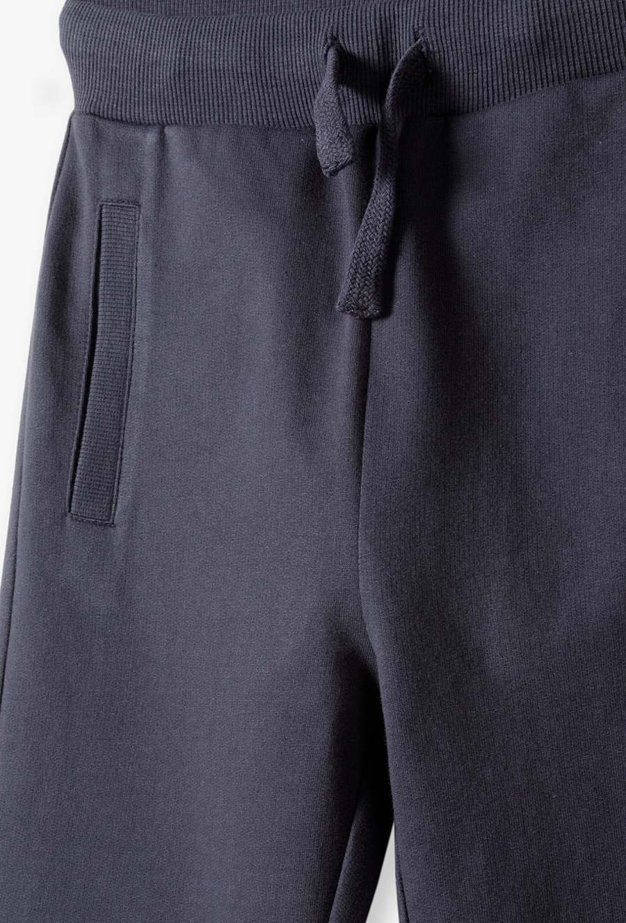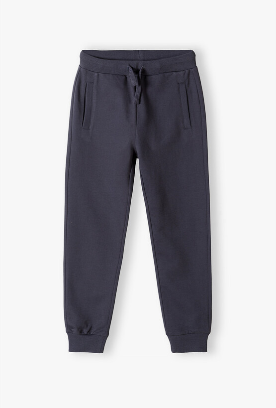 Joggery dresowe w kolorze antracytowym – klasyka sportowej wygody. Postaw na sprawdzony fundament codziennej garderoby! Te grafitowe spodnie dresowe to idealne połączenie minimalistycznego stylu z funkcjonalnością, której potrzebuje starszy chłopiec. Dzięki stonowanej kolorystyce i dopracowanemu krojowi, dresy te świetnie sprawdzą się zarówno podczas lekcji, jak i popołudniowych aktywności z kolegami. Elastyczny ściągacz w pasie został uzupełniony o solidne troczki. Pozwala to na idealne dopasowanie spodni do sylwetki, zapobiegając ich zsuwaniu się podczas ruchu. Nogawki zakończone są szerokimi, elastycznymi ściągaczami. Ten krój nie tylko świetnie eksponuje obuwie sportowe, ale także dba o to, by nogawki zawsze pozostawały na swoim miejscu.