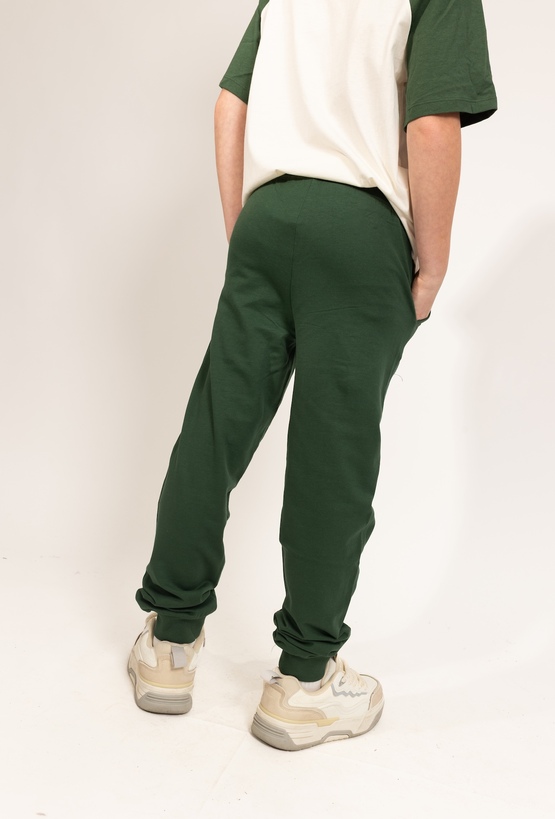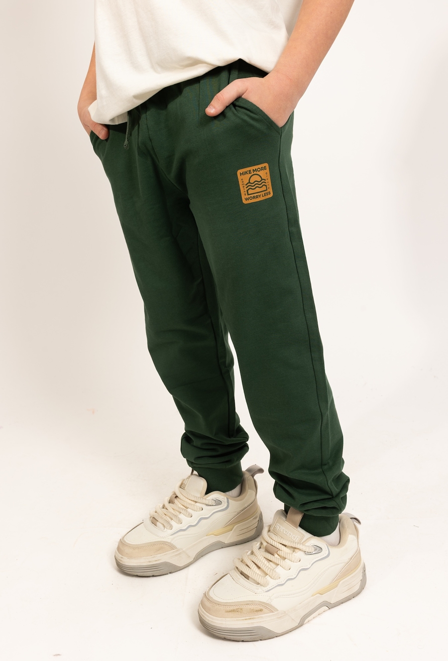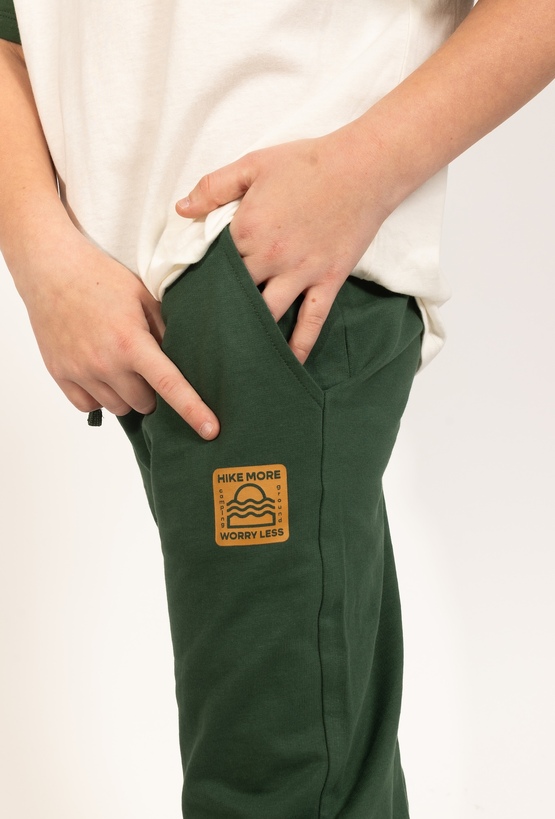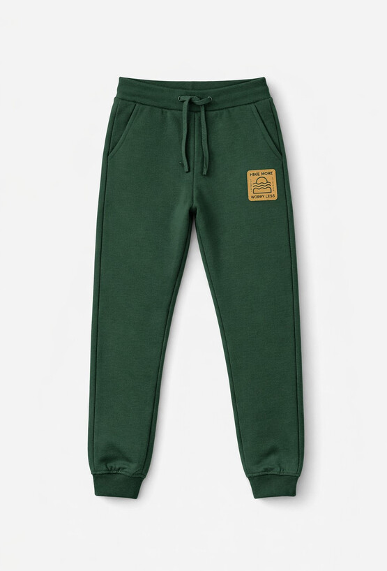 Komfort na co dzień w sportowym stylu. Zielone spodnie dresowe 51015 w kroju regular dobrze układają się na sylwetce i zapewniają swobodę ruchów podczas zabawy, spacerów i aktywności. Wykonane z 100% bawełny są miękkie i przyjemne dla skóry. Kontrastowy print na nogawce dodaje im charakteru, a praktyczne wykończenie sprawia, że to świetna baza do wielu zestawów.