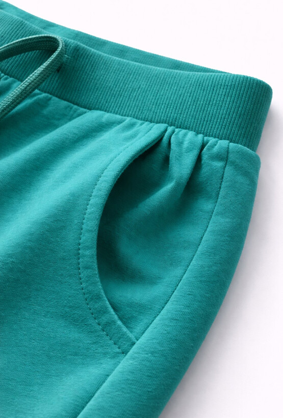 Zielone spodnie dresowe dla chłopca w kroju regular to wygodna baza do codziennych stylizacji. Miękka, bawełniana dzianina zapewnia komfort noszenia, a monochromatyczne sznurki w pasie pozwalają łatwo dopasować spodnie do sylwetki. Praktyczne kieszenie sprawdzą się na drobiazgi, a ściągacze przy nogawkach pomagają utrzymać spodnie na miejscu podczas zabawy i aktywności.
