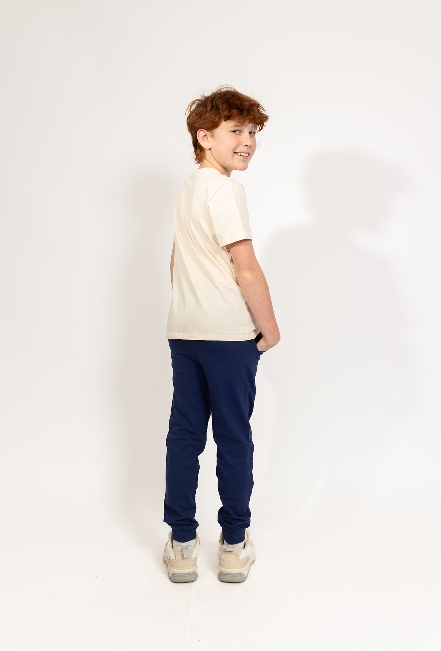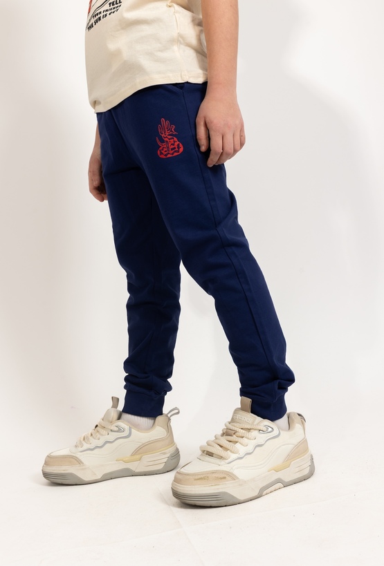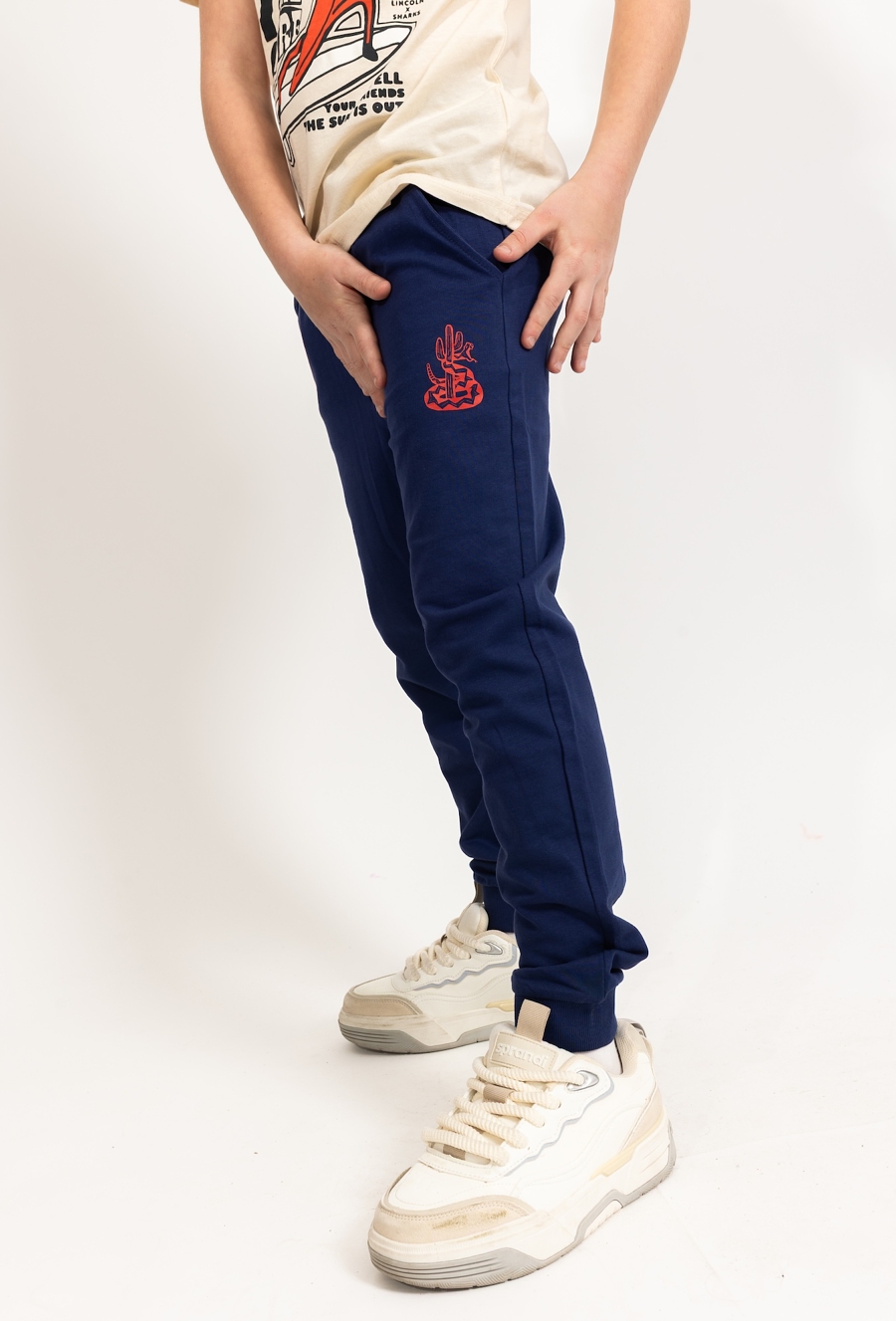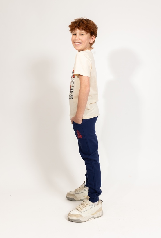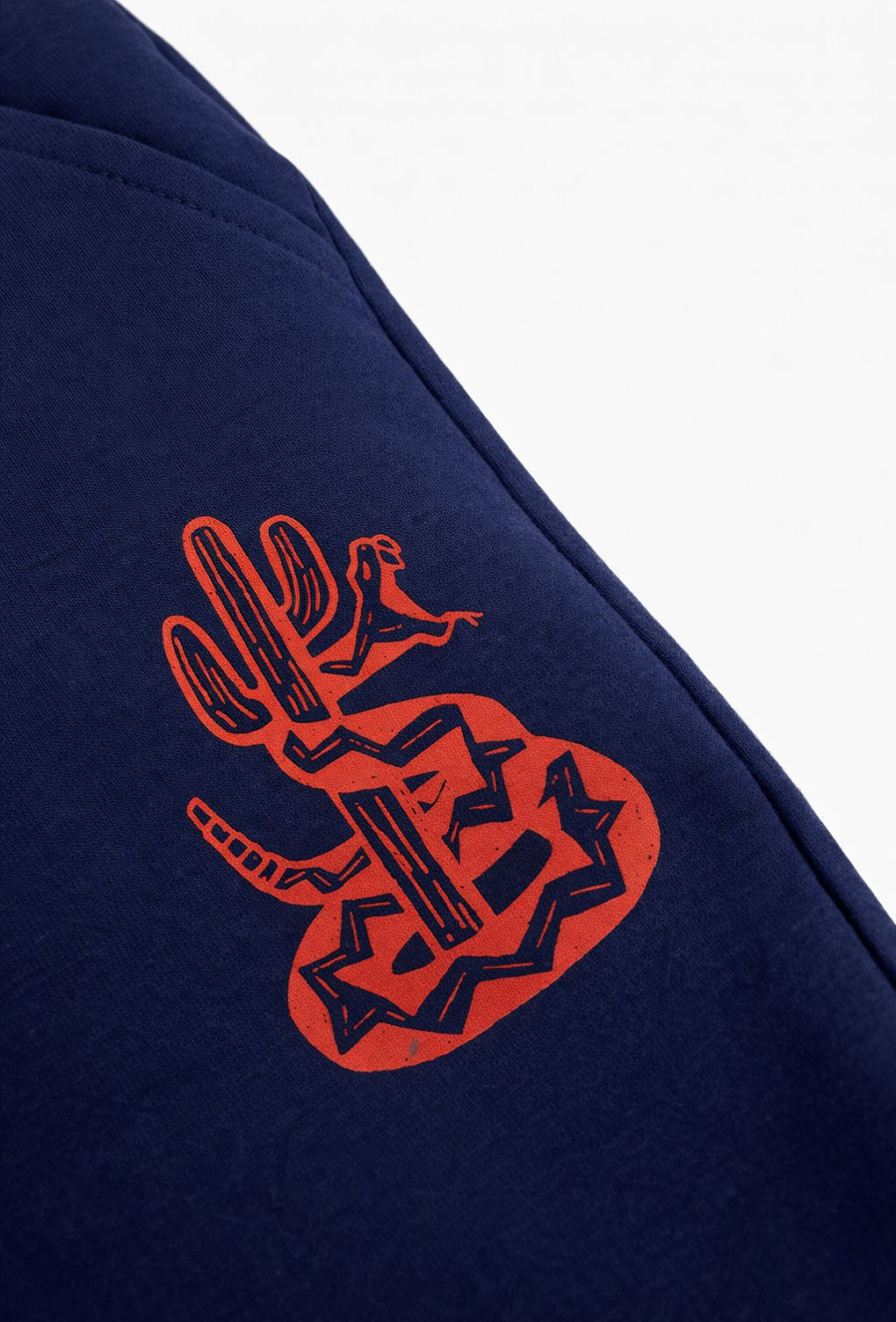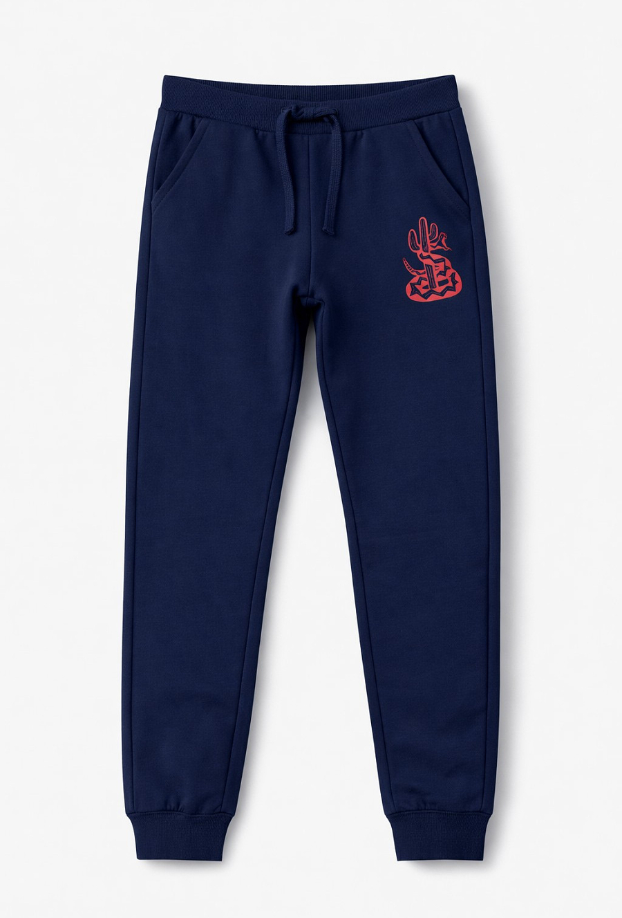 Wygodne spodnie dresowe chłopięce w kolorze granatowym to świetna baza codziennych stylizacji – do szkoły, na plac zabaw i na trening. Mają dopasowany fason slim, który dobrze układa się na sylwetce, ale nadal zapewnia swobodę ruchów. Elastyczny pas ze sznurkiem pozwala łatwo dopasować obwód, a ściągacze przy nogawkach utrzymują spodnie na miejscu. Całość uzupełnia efektowny print z motywem kaktusa na nogawce.