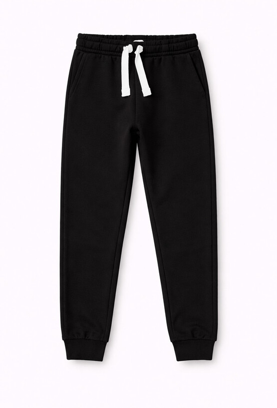 Postaw na uniwersalność i maksymalną wygodę z naszymi czarnymi spodniami dresowymi. To niezastąpiony element chłopięcej garderoby, który idealnie sprawdzi się podczas szkolnych zajęć, treningów sportowych czy aktywnego wypoczynku po lekcjach. Szeroka guma w pasie została wyposażona w kontrastowy, biały sznurek, który umożliwia precyzyjne dopasowanie spodni do sylwetki dziecka, gwarantując, że pozostaną na miejscu nawet podczas intensywnego ruchu. Głęboka czerń to najbardziej uniwersalna baza, którą z łatwością połączysz z dowolnym kolorowym T-shirtem czy bluzą z nadrukiem.