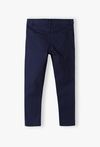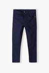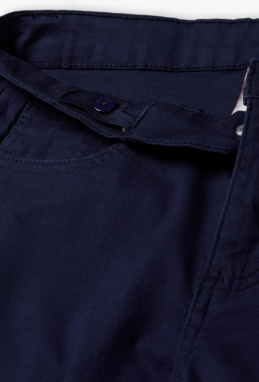 Szukasz spodni, które będą równie wygodne co jeansy, ale nadadzą stylizacji bardziej wizytowego charakteru? Te klasyczne granatowe spodnie typu chino to idealny wybór na szkolne uroczystości, rodzinne przyjęcia czy egzaminy. Łączą w sobie ponadczasowy styl z rozwiązaniami dbającymi o komfort Twojego dziecka. Spodnie charakteryzują się prostą, lekko zwężaną nogawką, która świetnie układa się na sylwetce, nadając jej schludny i elegancki wygląd. Wewnątrz paska umieszczono elastyczną gumkę zapinaną na guziki, która pozwala na precyzyjne dopasowanie obwodu spodni do sylwetki chłopca. Dzięki temu spodnie nie zsuwają się i zawsze leżą idealnie. Te spodnie to gwarancja nienagannego wyglądu Twojego syna w każdej sytuacji, która wymaga odrobiny szyku.