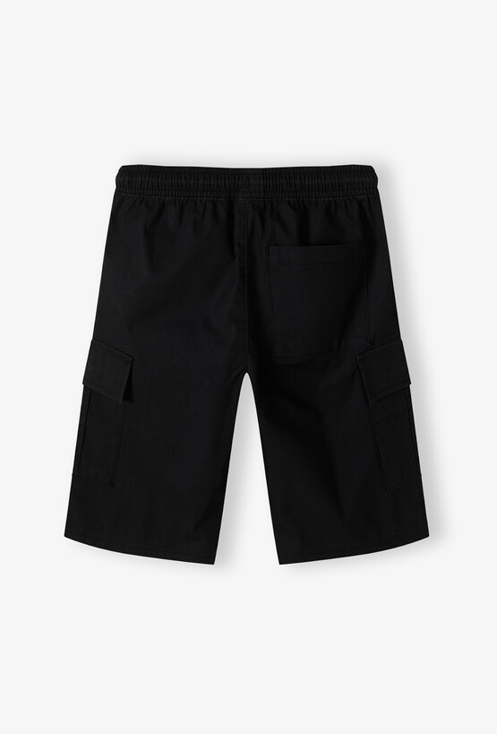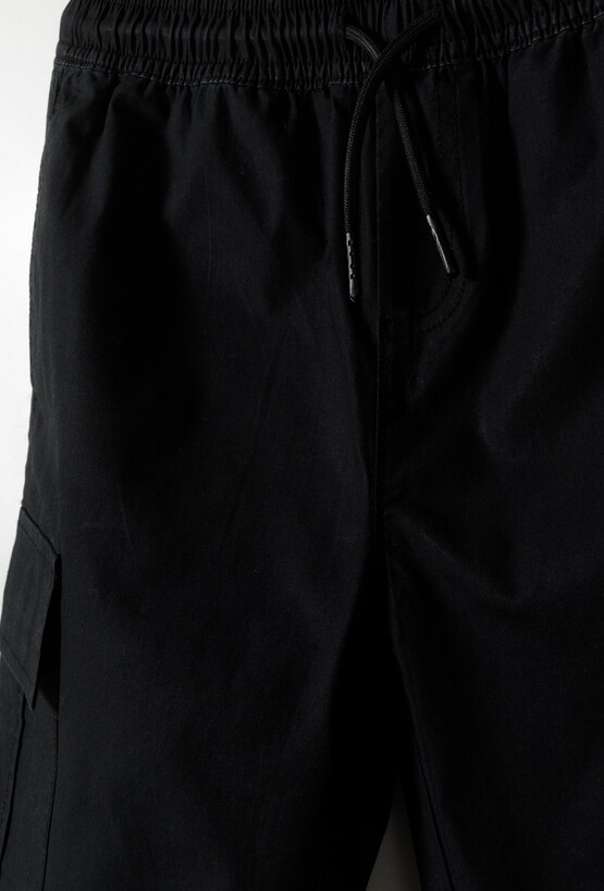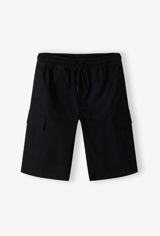 Szorty bojówki 3/4 – funkcjonalność i miejski styl dla aktywnego chłopca. Postaw na sprawdzony krój, który łączy wygodę z dużą ilością miejsca na dziecięce skarby. Te czarne szorty o długości 3/4 to idealny wybór dla chłopców, którzy cenią sobie swobodę i praktyczne rozwiązania podczas codziennych przygód. Przedłużona nogawka za kolano zapewnia dodatkową osłonę nóg, co doskonale sprawdza się podczas jazdy na rolkach, rowerze czy wspinaczek na placu zabaw. Głęboka czerń sprawia, że szorty są bardzo uniwersalne i łatwo dopasować do nich każdy kolorowy T-shirt czy bluzę z kapturem.