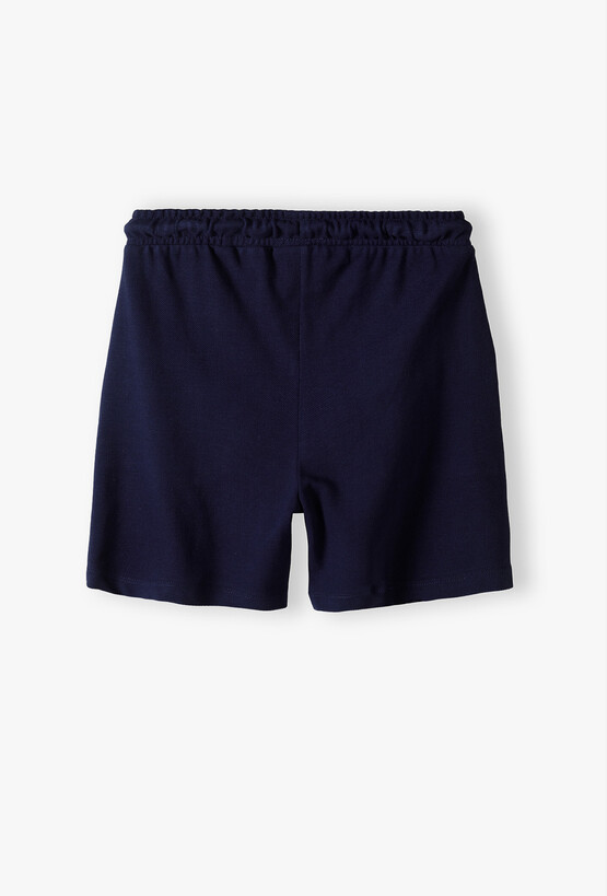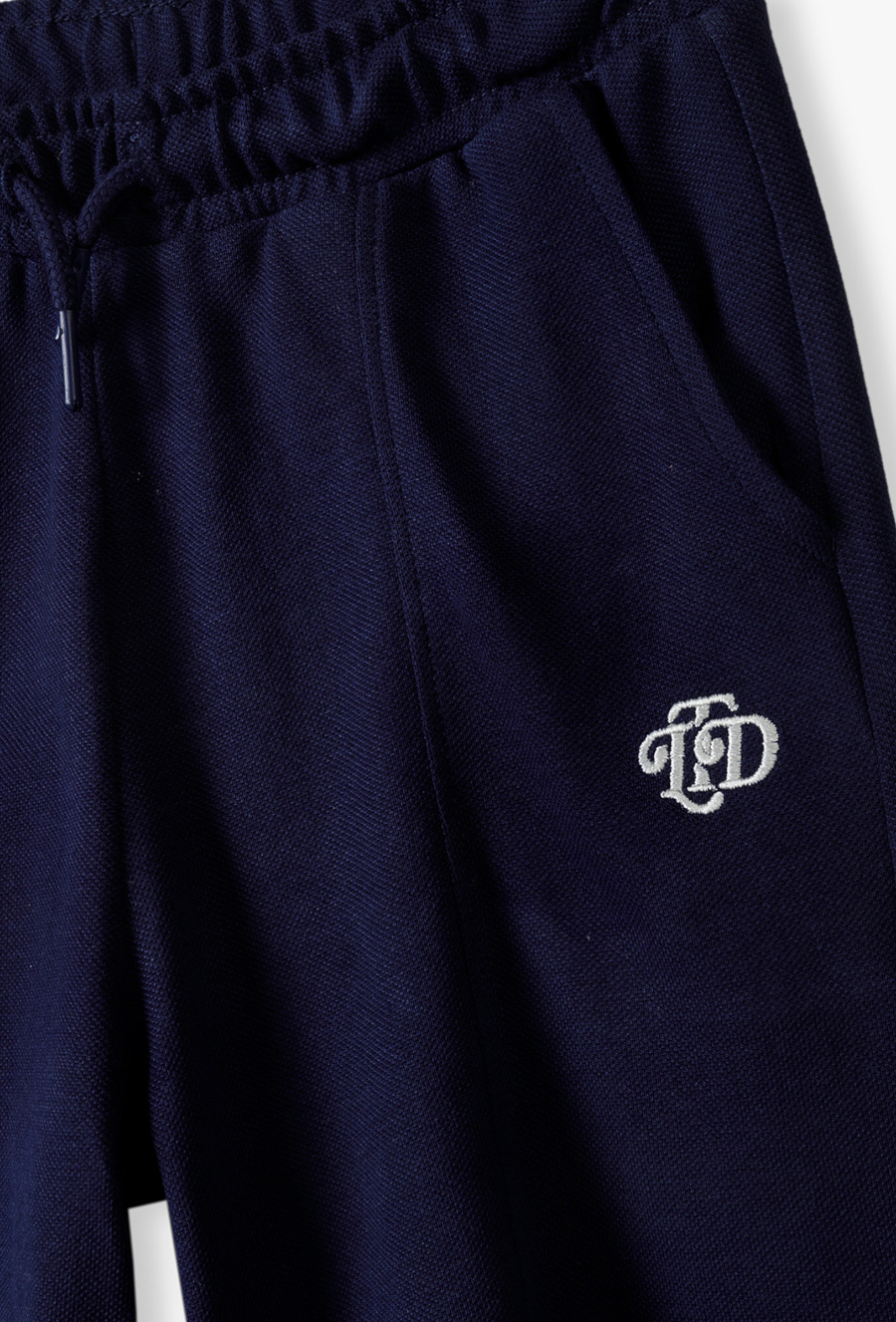 Postaw na sprawdzoną klasykę i najwyższą wygodę! Te granatowe szorty dresowe z linii Limited Edition to idealne rozwiązanie dla starszych chłopców, którzy potrzebują uniwersalnych spodenek na lato. Łączą w sobie swobodę ruchów typową dla odzieży sportowej z estetycznym wykończeniem, dzięki czemu sprawdzą się zarówno na boisku, jak i podczas wakacyjnego zwiedzania. Na lewej nogawce umieszczono precyzyjny, biały haft z ozdobnym logotypem Limited Edition. To detal, który podkreśla unikalny charakter serii i nadaje spodenkom prestiżowego wyglądu. Szeroka, elastyczna guma w pasie została uzupełniona o sznurek w kolorze spodni. Pozwala to na idealne dopasowanie do sylwetki, zapewniając komfort podczas biegania czy gry w piłkę.