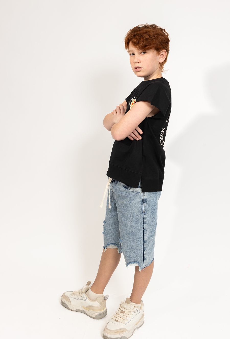 Koszulka oversize chłopięca z kieszonką i haftem