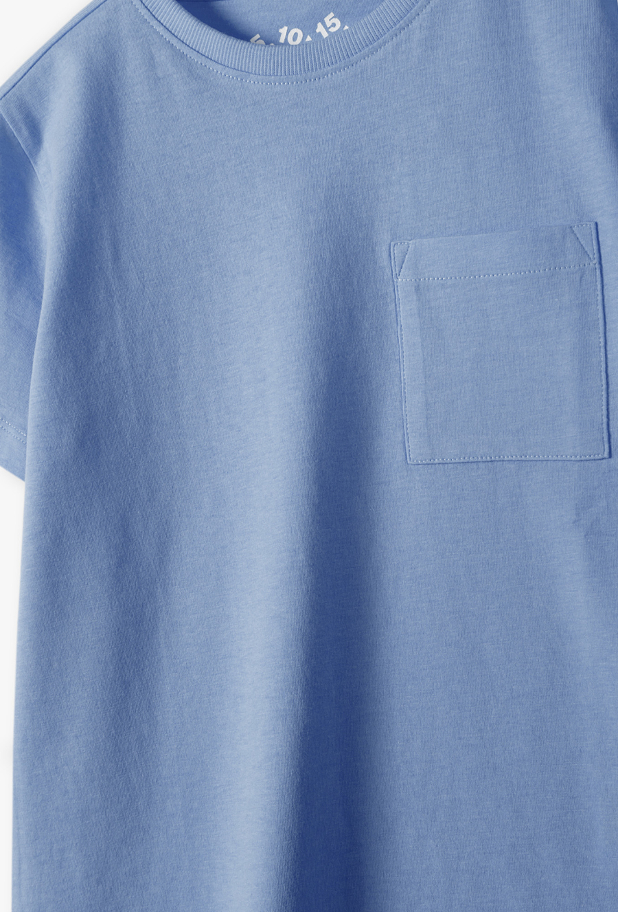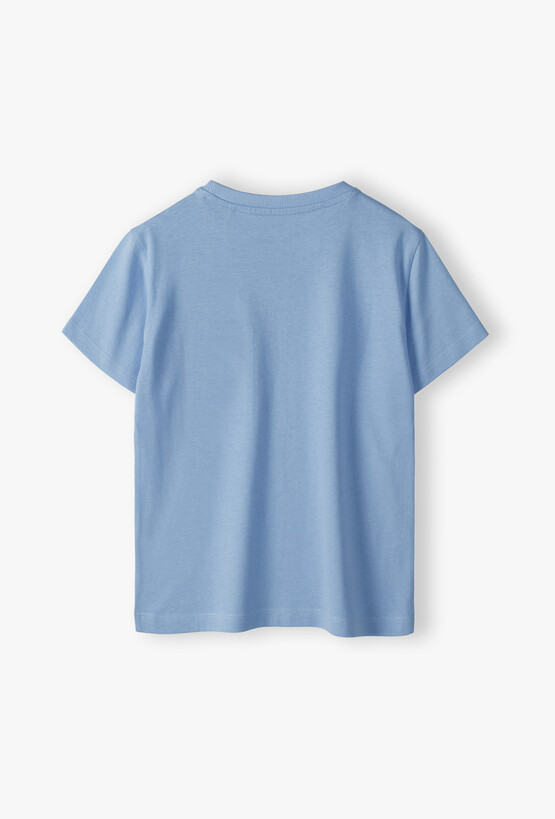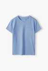 Szukasz idealnej bazy do codziennych stylizacji swojego syna? Ten błękitny T-shirt to połączenie ponadczasowej klasyki z nowoczesnym akcentem. Dzięki stonowanej kolorystyce i wysokiej jakości wykonania, koszulka ta stanie się niezastąpionym elementem garderoby, który pasuje do niemal wszystkiego. Na przodzie umieszczono naszywaną kieszonkę z subtelnymi wzmocnieniami w rogach. To modny detal, który przełamuje prostotę fasonu i nadaje mu miejskiego charakteru. Jasny, gołębi odcień niebieskiego jest niezwykle twarzowy i łatwy do zestawienia. Doskonale komponuje się z granatowymi joggerami, czarnymi spodniami cargo lub jasnymi jeansami.