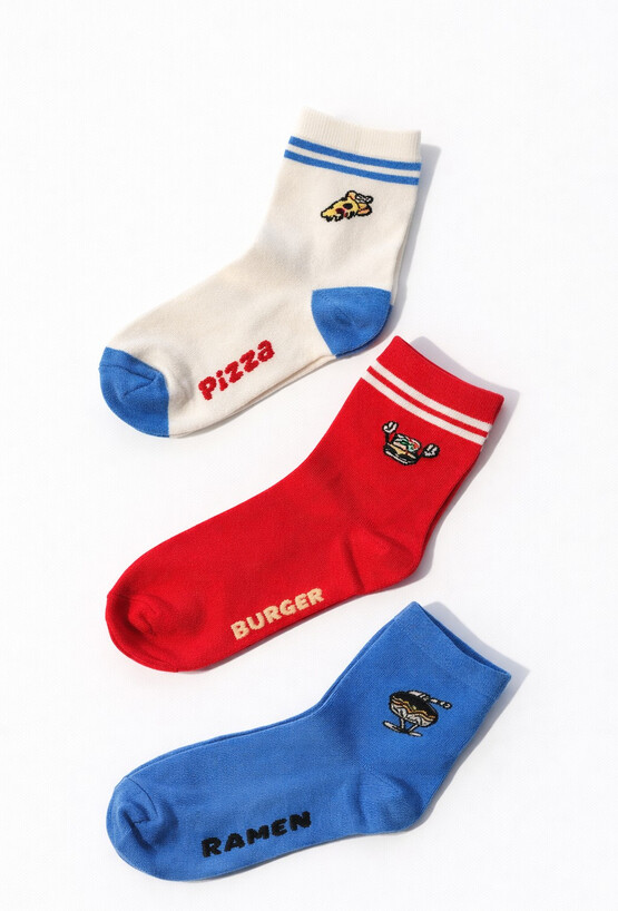 Zestaw 3 par skarpetek „Food” – Pizza / Burger / Ramen