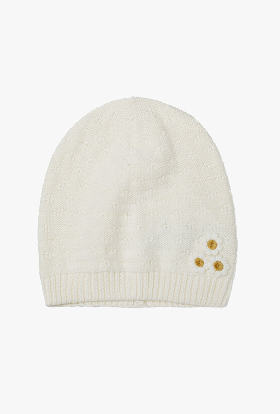 Zapewnij swojej córeczce delikatną ochronę przed wiosennym wiatrem w najpiękniejszym stylu! Ta biała, ażurowa czapka to idealne połączenie funkcjonalności i dziewczęcego wdzięku. Dzięki lekkiej konstrukcji i naturalnym materiałom, czapka dba o komfort termiczny główki dziecka, nie dopuszczając do jej przegrzania. Cała powierzchnia czapki posiada misterny, dziurkowany wzór, który zapewnia doskonałą cyrkulację powietrza. To idealne rozwiązanie na słoneczne, ale wietrzne wiosenne dni. Bok czapki zdobią trzy małe, wypukłe aplikacje w kształcie stokrotek z żółtym środkiem. Ten subtelny florystyczny akcent dodaje ubranku wyjątkowego uroku i radosnego charakteru.