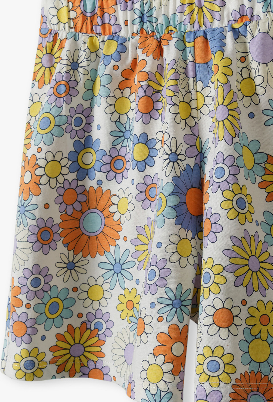 Postaw na letnią energię i wygodę! Te kolorowe spódnico-spodnie to idealne rozwiązanie dla dziewczynek, które kochają biegać i skakać, a jednocześnie chcą wyglądać uroczo. Dzięki bardzo szerokim nogawkom, szorty te na pierwszy rzut oka przypominają zwiewną spódniczkę, zapewniając przy tym pełen komfort podczas każdej zabawy. Bardzo luźny krój nogawek sprawia, że szorty imitują spódnicę. To niezwykle praktyczne rozwiązanie – Twoja córeczka zyskuje dziewczęcy wygląd spódniczki przy zachowaniu dyskrecji i wygody krótkich spodenek. Te spódnico-spodnie doskonale komponują się z gładkimi T-shirtami typu basic, białym body lub lekkimi sandałkami. Są idealne na wakacyjne wycieczki, spacery oraz do przedszkola.