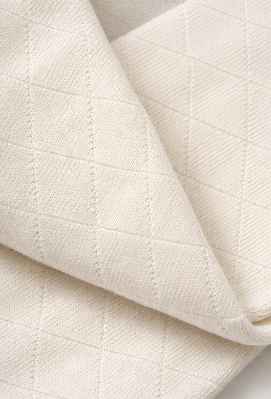 Eleganckie rajstopy dla dziewczynki w kolorze ecru z subtelnym, strukturalnym wzorem rombów. Świetnie dopełniają stylizacje z sukienką i spódniczką – na co dzień, do przedszkola i na rodzinne wyjścia.