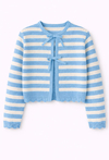Lekki, niebieski ażurowy sweter rozpinany to idealna warstwa „na wierzch” na wiosnę, lato i wczesną jesień. Uszyty w 100% z bawełny, jest miękki i przewiewny, a luźny krój zapewnia swobodę ruchów podczas zabawy i spacerów. Ażurowy splot dodaje uroku, a całość pięknie dopełniają ozdobne kokardki. Praktyczne zapięcie na krytą napkę sprawia, że sweter łatwo założyć i zdjąć, a jednocześnie wygląda bardzo estetycznie.