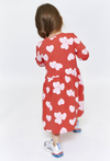 Bawełniana sukienka z długim rękawem - czerwona w serduszka