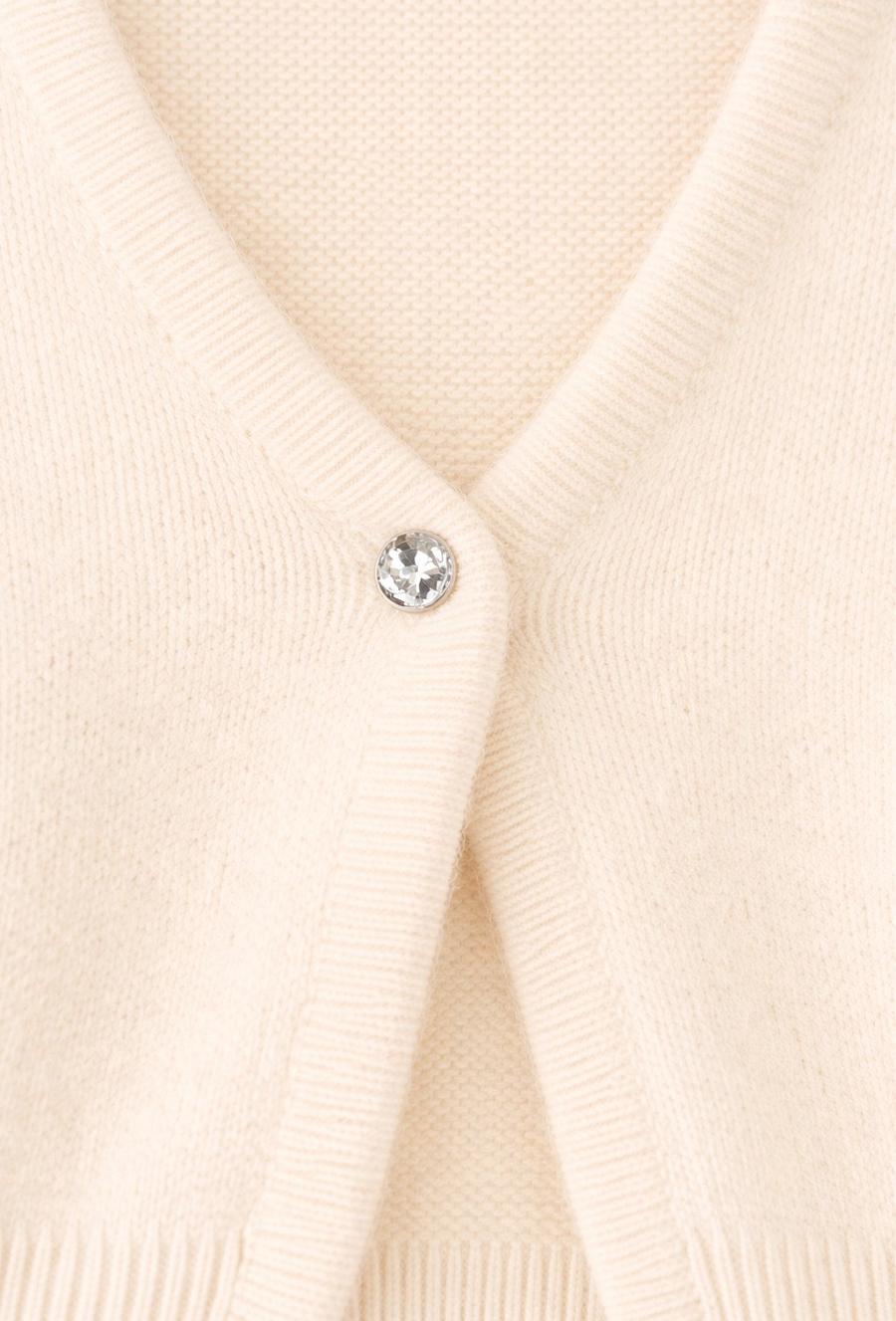 Delikatny biały kardigan rozpinany dla dziewczynki to doskonały dodatek na każdą okazję. Wykonany z miękkiego i przyjemnego w dotyku materiału, zapewnia komfort noszenia przez cały dzień. Klasyczny krój z guzikami ułatwia zakładanie, a uniwersalny kolor sprawia, że świetnie komponuje się zarówno z sukienkami, jak i codziennymi stylizacjami. Idealny na chłodniejsze dni lub jako lekka warstwa wiosną i latem. To praktyczne i stylowe uzupełnienie dziecięcej garderoby.