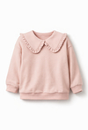 Bluza dziewczęca pudrowy róż z kołnierzem i falbanką