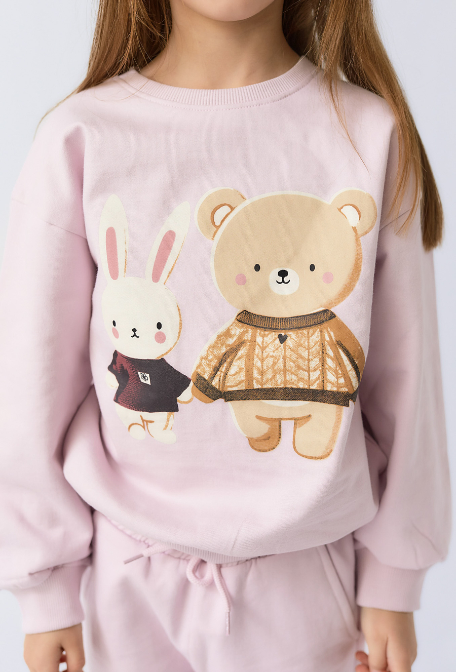 Bluza dziewczęca z nadrukiem misia i króliczka