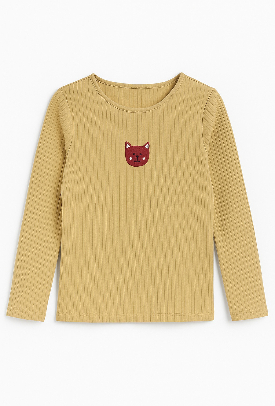 Bluzka dziewczęca z długim rękawem i aplikacją kotka