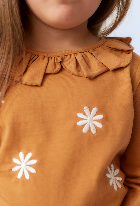 Bluzka dziewczęca z falbanką i haftowanymi kwiatami