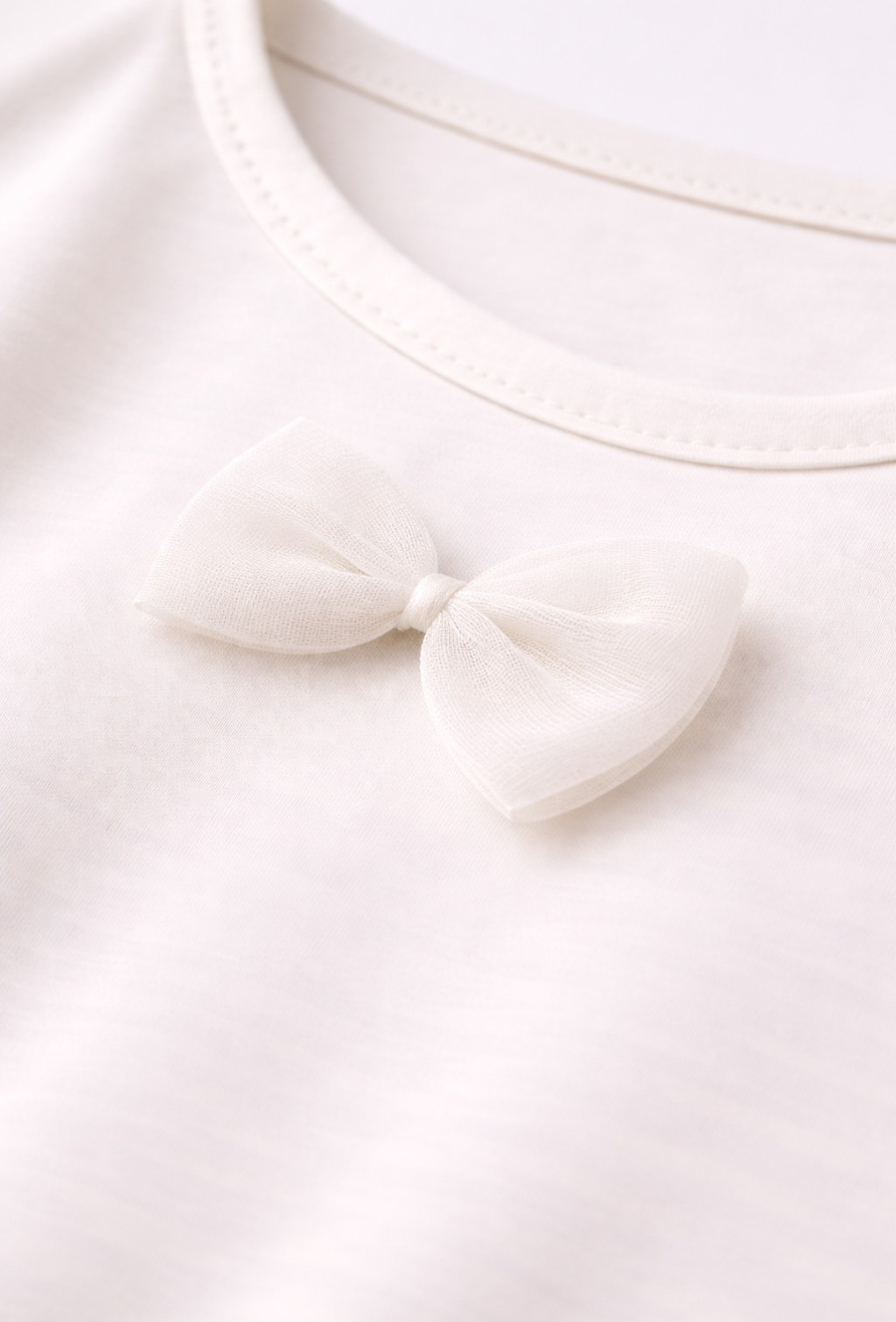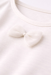 Ta biała bluzka to doskonała baza do wielu stylizacji, łącząca klasyczną prostotę z nutką dziewczęcej fantazji. Wykonana w 100% z wysokiej jakości bawełny, zapewnia skórze swobodne oddychanie i wyjątkowy komfort noszenia przez cały dzień. Przód bluzki zdobią cztery symetrycznie rozmieszczone, doszywane tiulowe kokardki w kolorze pasującym do całości, które dodają ubraniu lekkości i elegancji. Biały kolor i subtelne zdobienia sprawiają, że bluzka pasuje do niemal wszystkiego – od tiulowych spódniczek po klasyczne spodnie.