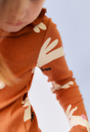 Brązowa bluzka dla dziewczynki z długim rękawem i nadrukiem króliczków to świetna propozycja na co dzień i od święta. Model wykonany z miękkiego, prążkowanego materiału z domieszką elastanu, zapewnia komfort noszenia przez cały dzień. Dekoracyjny, marszczony kołnierzyk dodaje dziewczęcego uroku, a uroczy print z króliczkami sprawia, że stylizacja nabiera lekkości i dziecięcej radości. Bluzka doskonale sprawdzi się w przedszkolu, na spacerze czy podczas rodzinnych wyjść. Połącz ją z legginsami lub spódniczką i stwórz modny, bajkowy look!