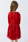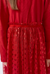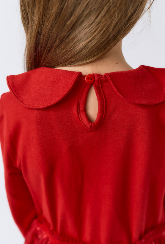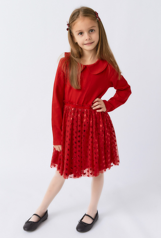 Czerwona dziewczęca sukienka z długim rękawem i tiulowym dołem