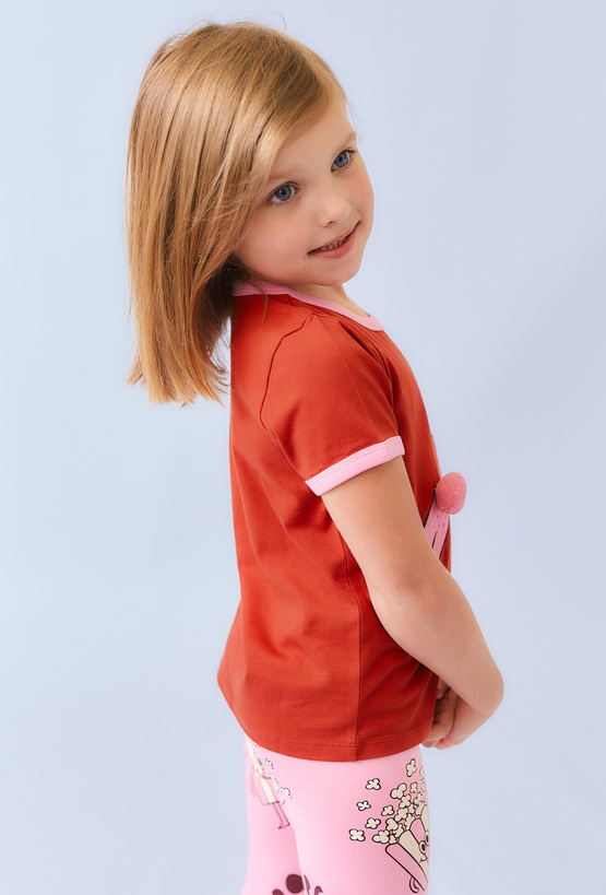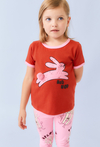 Koszulka dziewczęca z kolekcji Limited Edition, z nadrukiem króliczka i uroczym pomponem jako ogonek to must-have w każdej dziecięcej szafie! Wykonana w 100% z miękkiej bawełny, zapewnia komfort noszenia na co dzień. Ciepły, czerwony odcień doskonale kontrastuje z różowymi wykończeniami przy dekolcie i rękawkach. Print z króliczkiem i napis "Big Hop" dodają energii i zabawy każdej stylizacji.
