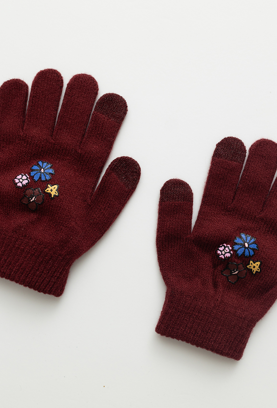 Dziewczęce rękawiczki swetrowe z kwiatowym nadrukiem.