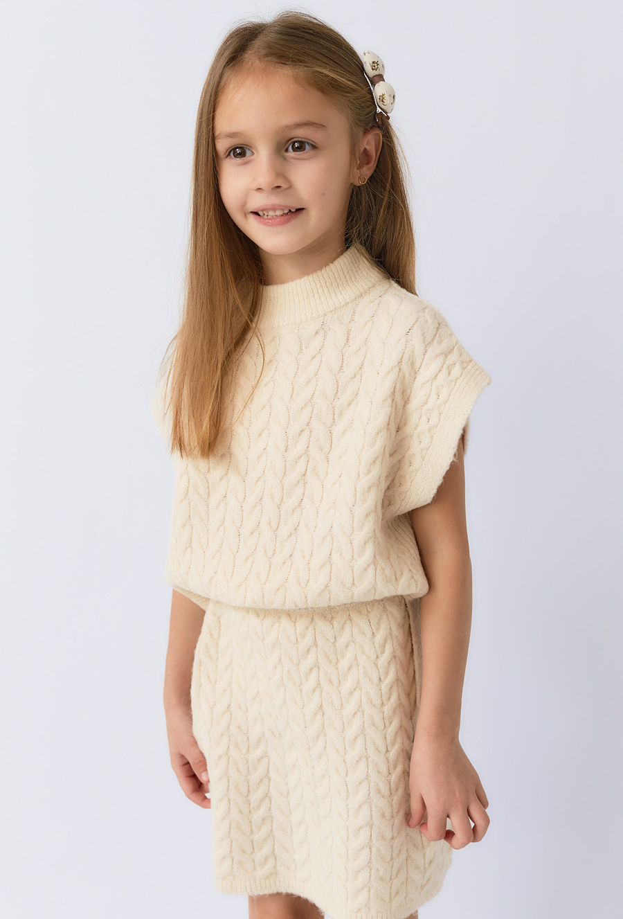 Dziewczęcy sweter w warkoczowy splot z golfem w kolorze ecru