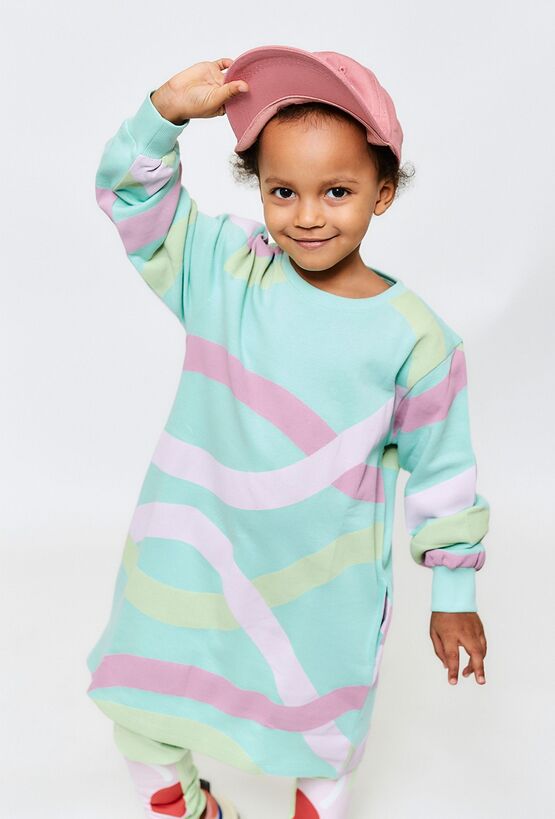 Swobodna sukienka dresowa w pastelowe wzory to połączenie wygody i stylu na co dzień. Wykonana z miękkiej 100% bawełny, która zapewnia komfort noszenia, a luźny fason daje pełną swobodę ruchów. Długie rękawy sprawdzą się w chłodniejsze dni, a unikalny wzór dodaje całości charakteru. Idealna dla dziewczynki ceniącej wygodne, ale efektowne ubrania.